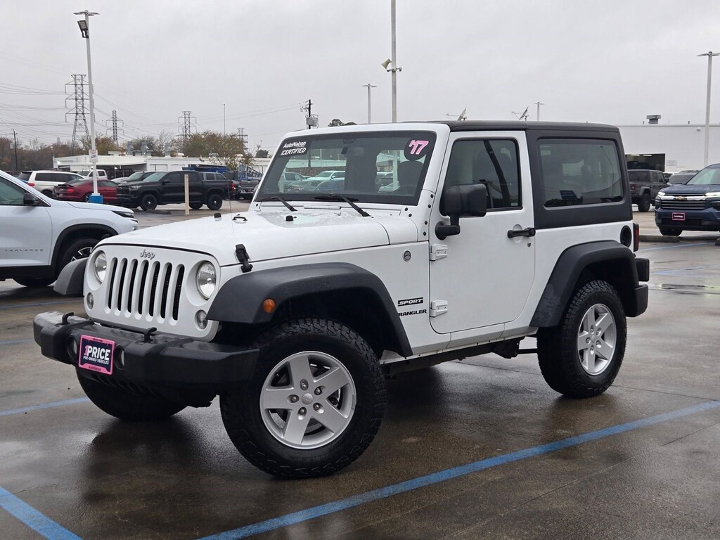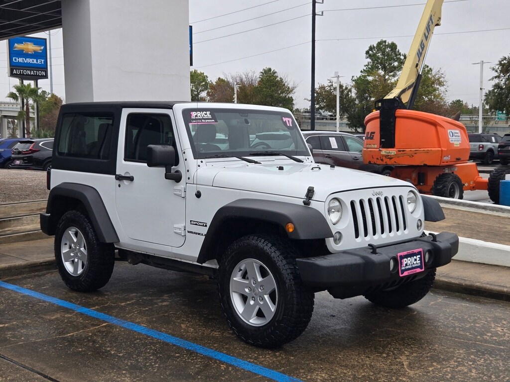 Looking for a clean, well-cared for 2017 Jeep Wrangler? This is it. This Jeep includes: ENGINE: 3.6L V6 24V VVT (STD)V6 Cylinder Engine Gasoline Fuel *Note - For third party subscriptions or services, please contact the dealer for more information.*Off-road or on the street, this Jeep Wrangler Sport handles with ease. Equipped with 4WD, this Jeep Wrangler Sport gives you added confidence to tackle the surface of any path you take.It's not often you find just the vehicle you are looking for AND with low mileage. This is your chance to take home a pre-owned and barely driven Jeep Wrangler.More information about the 2017 Jeep Wrangler:With prices starting at a little under $23,000 with standard 4-wheel drive, the classic Wrangler is one of the best SUV values available. The 6-speed manual transmission helps the Wrangler achieve a decent 17 mpg city and 21 mpg highway rating. Jeep considers the Wrangler's off-road prowess integral to the brand and they continue to make one of the most capable 4-wheel drive vehicles available.Strengths of this model include 2- and 4-door configurations available, Iconic styling, and impressive off-road prowess Contact our pre-owned department at 281-481-6680 or click link to ask additional questions! Look forward to hearing from you!